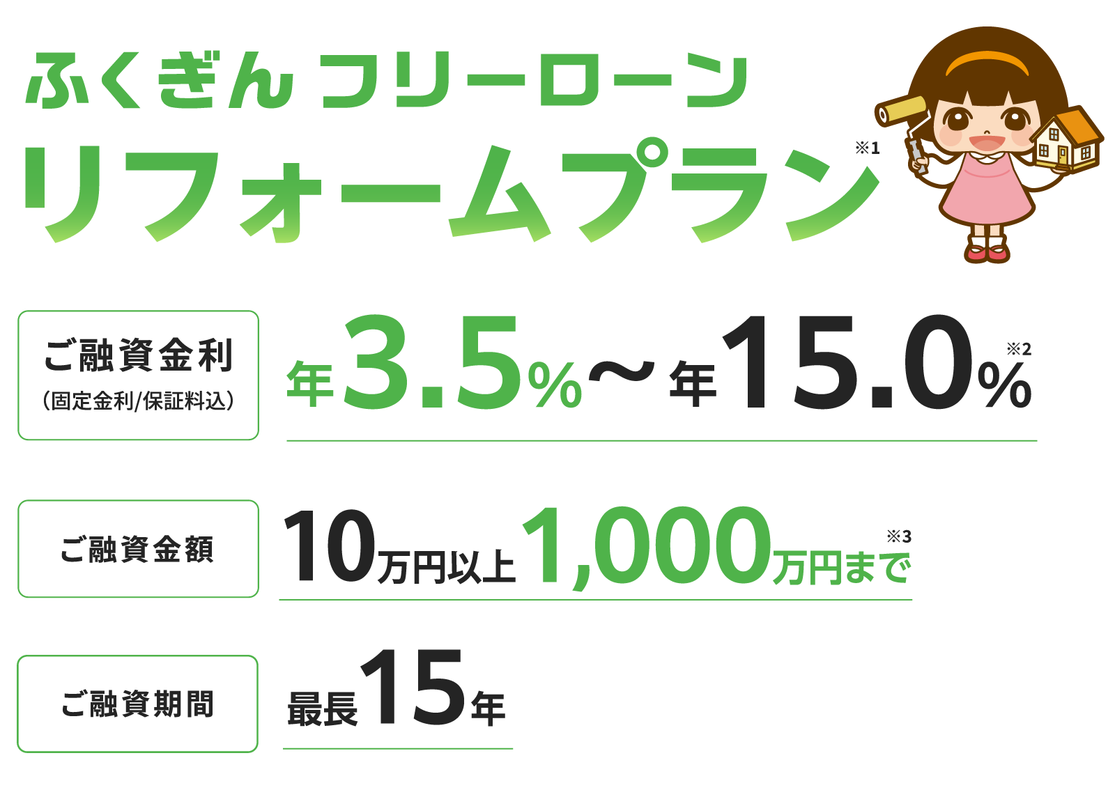 ※2 ご融資金利は、審査によって決めさせていただきます。ご希望に沿えない場合がございますので、あらかじめご了承ください。