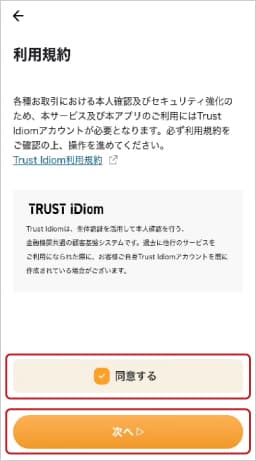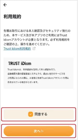 ②Trust Idiom利用規約を確認し「同意する」にチェックします。