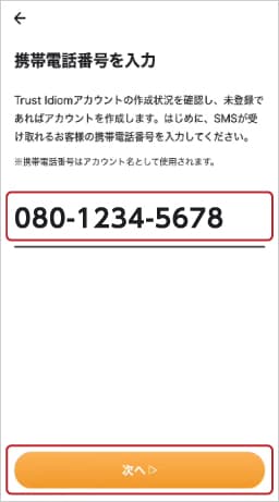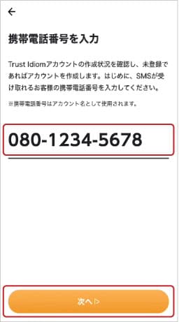 ③携帯電話番号を入力します。