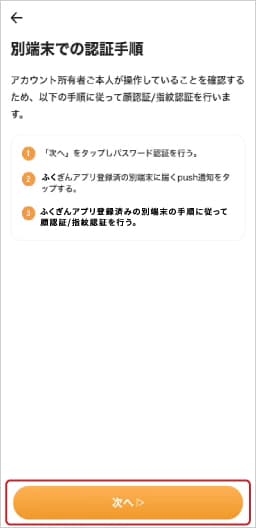 ⑤認証手順を確認し「次へ」をタップします。