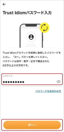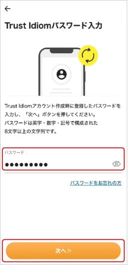 ⑦Trust Idiomのパスワードを入力します。パスワードをお忘れの方はこちらをご確認ください。