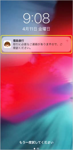 ⑧旧端末に届いたPush通知をタップします。Push通知が届かない場合はこちらをご確認ください。