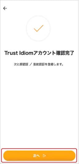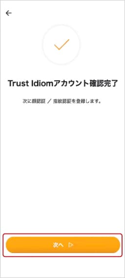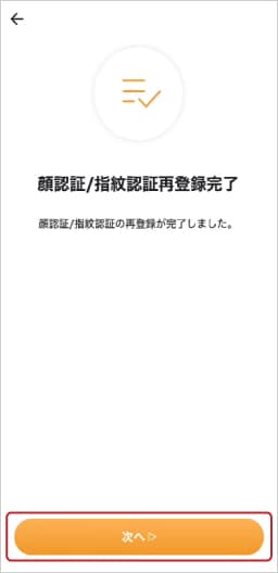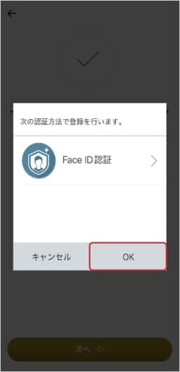 ⑧「次へ」をタップし、生体認証(顔認証/指紋認証)を登録します。