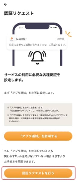 それでもPush通知が届かない場合は「認証リクエストを行う」をタップ。