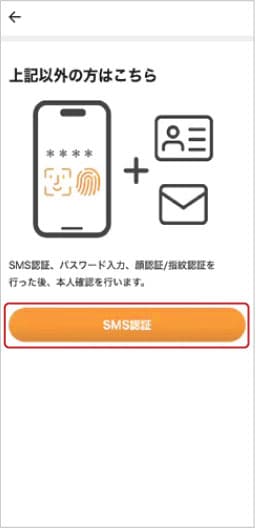 ④「上記以外の方はこちら」の「SMS認証」をタップします。