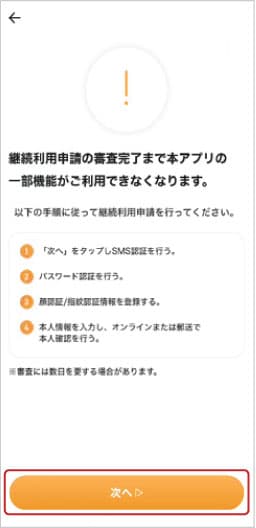 ⑤手順を確認し「次へ」をタップします。