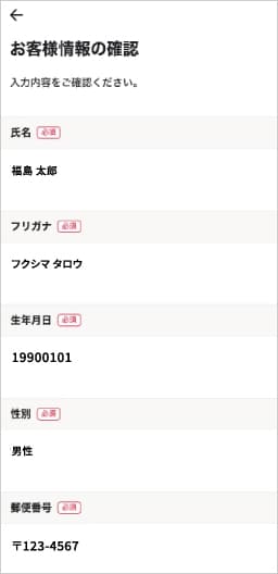 本人確認方法で郵送を選択した方は、お客様情報を入力後、「お申し込みを終了する」をタップします。