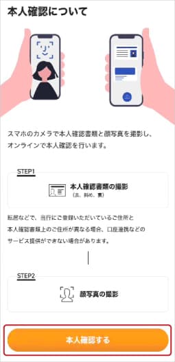 ⑬画面の指示に従い本人確認を行います。