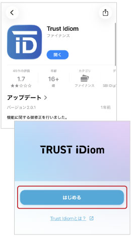 ⑮「Trust Idiomアプリをご利用中の方」の「Trust Idiomアプリで認証する」をタップします。