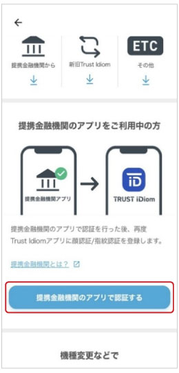 ④「提携金融機関のアプリをご利用中の方」の「提携金融機関のアプリで認証する」をタップします。