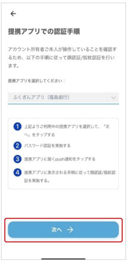 ⑤「ふくぎんアプリ(福島銀行)」を選択し「次へ」をタップします。