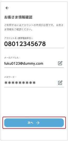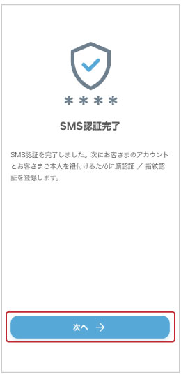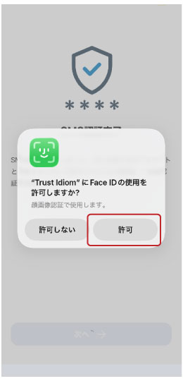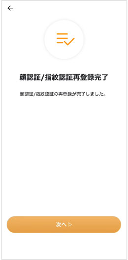 ⑪「次へ」をタップし、生体認証(顔認証/指紋認証)を登録します。