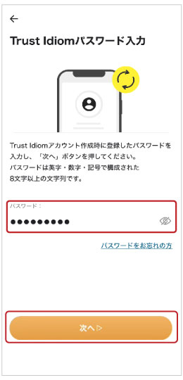 ⑯⑧で設定したTrust Idiomのパスワードを入力します。