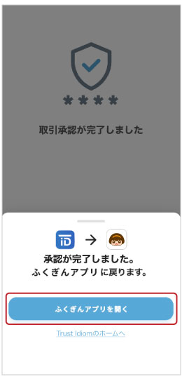 ⑫Trust Idiomアカウントの作成が完了したら、ふくぎんアプリに戻ります。