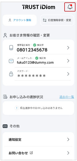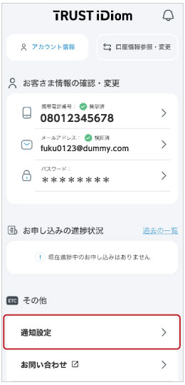 ④Trust Idiomアプリに戻り、通知が届いていることを確認します。