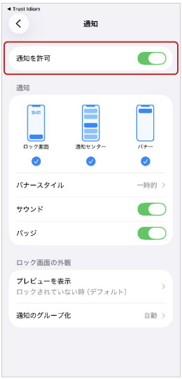 Push通知が届かない場合は、Trust Idiomアプリで以下の操作を行ってください。